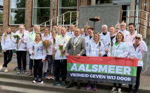 Donderdag 4 mei werden meteen na de dodenherdenking 20 Aalsmeerse atleten met een bus naar Wageningen gebracht om deel te nemen aan de Nationale Bevrijdingsvuurestafette. Zo’n 1700 lopers en fietsers van 87 gemeenten, uit alle hoeken van Nederland, verzamelden zich bij hotel “De Wereld” op het 5 mei plein.