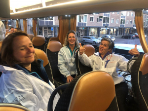 Drie fietsers, Michiel en Clara, beiden goede bekenden bij AVA, twee EHBO-ers, logistiek leider wethouder Willem Kikkert en 16 lopers, waaronder burgemeester Gido Oude Kotte en onze AVA leden Femke de Wit, Carolien Trock (met last minute invaller man Glenn), Ria Timmer, Suzan Jansen, Inge v/d Berg en Linda Jonker hebben met elkaar de ruim 80 km naar Aalsmeer afgelegd. De hardloop omstandigheden waren prima. Door een warme, rustige, windstille nacht met een paar spetters regen en wat lichtflitsen in de verte naar een mooie, zonnige start van bevrijdingsdag. Rond Wageningen konden er nog andere loopgroepen gezien en aangemoedigd worden maar naar mate de reis vorderde werd het steeds rustiger op de route. Om 9:00 werd de laatste etappe gelopen naar Fitness Aalsmeer waar er gedoucht kon worden en er een ontbijt klaar stond. Weer fris naar het officiële gedeelte dus. Onder begeleiding van een accordeonist met fakkels werd naar het Raadhuisplein gelopen waar er een warm onthaal was van familie en bekenden, waar het vredesvuur werd aangestoken en er een woordje werd gedaan door de loco burgemeester.