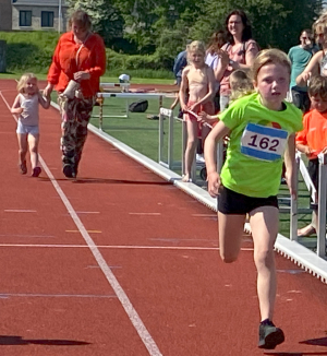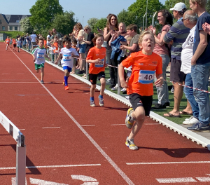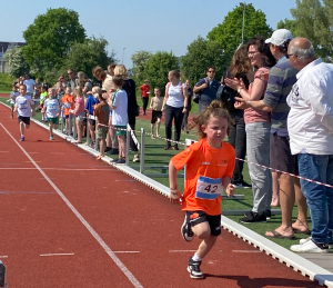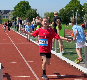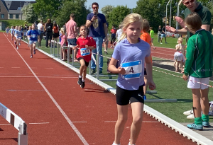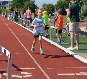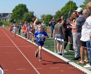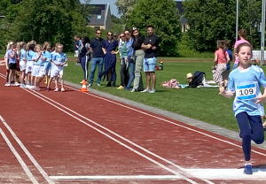 Traditiegetrouw bleek de 600 meter oftewel anderhalve ronde op de atletiekbaan, een pittige afsluiting. Mede door de vele aanmoedigingen van de (groot)ouders en andere supporters rondom de baan, haalde bijna iedereen de eindstreep en konden velen er zelfs nog een mooie eindsprint uitpersen.