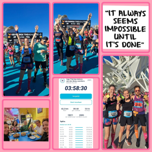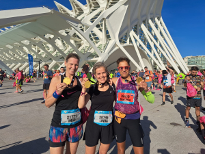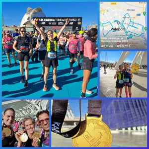 In het voorjaar van 2023 werd een plan gesmeed om in het buitenland een marathon te lopen. Voor Linda, Inge en Erica een nieuwe ervaring. Hoe zou dat gaan? Vol goede zin en moed werd er gestart met trainen volgens een schema. Het traject werd een achtbaan voor 2 loopsters. Na maanden onzekerheid van wel of niet kunnen starten, pijntjes hier en daar, vertrokken we toch met z’n vieren op donderdag 30 november naar Valencia. Best een mijlpaal om toch met elkaar te gaan starten. We vertrokken ruim op tijd om ook te kunnen genieten van deze mooie stad. Sightseeing in Valencia op de fiets om onze benen te sparen, op tijd naar bed en op vrijdag naar de Expo om ons startnummer op te halen. Weinig gesprekken zijn er gevoerd zonder het woord “hardlopen”. Op zaterdag ieder haar eigen potje gekokkereld om geen risico’s te nemen. En dan is het zondag 3 december… De spanning is op zijn hoogtepunt… Vandaag moet het gebeuren! Op tijd uit bed, de laatste voorbereidingen, op de fiets naar de start, tas inleveren en naar het startvak. Een hele tour met al 7000 stappen op de teller, voordat het startschot afging. Erica startte een uur eerder dan de anderen mochten starten. Onder een strak blauwe lucht, een prachtig historisch breed parcours, muziek en veel enthousiaste toeschouwers de strijd met de 42,2 km en onszelf overwonnen. Inge wist een P.R. te pakken door onder de 4 uur te lopen (3.58.30). Linda liep ook onder de 4 uur (3.57.13) en heeft naast een P.R. ook het clubrecord verbroken in haar leeftijdscategorie. Graciela liep een mooie tijd (4.37.17) in de aanloop naar Boston en Erica besloot af te zien van het voornemen “rustig lopen en genieten” en zette wederom een toptijd neer (2.57.20). We kijken met veel plezier en trots terug op een heel geslaagd marathonweekend.