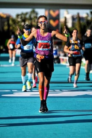 Ik heb heerlijk gelopen en het was echt super! Ook zo gezellig met die andere dames! Ik was niet naar Valencia gekomen om mijn PR (2:56:02, april dit jaar in Rotterdam) te verbeteren, maar wilde vooral genieten van mijn eerste marathon in het buitenland, de prachtige stad en de geweldige sfeer. Maar eenmaal in het startvak bracht de muziek en de speaker het adrenalineniveau tot grote hoogte en als dan eenmaal het startschot klinkt ben je niet meer te houden. Aangemoedigd door de vele Spanjaarden langs het parcours (Vamos! en Venga!) en onder begeleiding van Highway to Hell van ACDC (wel vijf keer gehoord onderweg) vliegen de kilometers dan ongemerkt voorbij. The highway to hell, bleek the highway to heaven, want als je na 42.195 kilometer dan eindelijk over de blauwe loper op de finish afloopt dan voelt het echt even alsof je in de hemel binnen rent! Dat je dan ook nog (zonder al te veel moeite) je tweede beste tijd ooit loopt is dan een extra cadeautje!