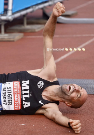 Een hele opmerkelijke prestatie werd geleverd door ex-AVA-er Bas Stigter (39 jaar) die keihard getraind had om onder het record (2:15:14) van zijn vader/coach en ex-Nederlands kampioen Aart Stigter wilde lopen .Letterlijk op zijn laatste benen liep Bas naar 2:14:07, en werd daarmee vierde Nederlandse man en 1e bij het NK M35!