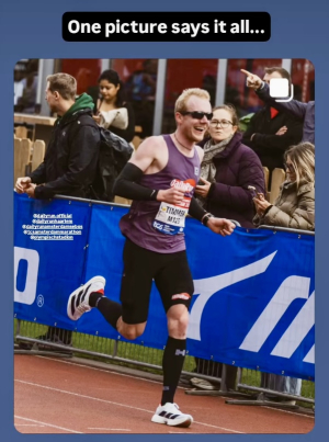 Wessel: :"Zo dat was wel ff the full experience zoals ze dat altijd mooi zeggen. Ik dacht: die valkuilen waar iedereen voor waarschuwt? Laat ik ze gewoon even checken. Misschien achteraf gezien ietwat te hard gestart en eigenwijs m’n gelletjes over geslagen waardoor de tank wat eerder leeg was dan gehoopt. Eerste 30 top gelopen, iets onder schema, samen met Jesper van Dam! Daarna kwamen de mannen met de hamers en was het afzien de laatste kilometers. Door de fantastische support van vrienden, familie en onbekende de laatste paar kilometers eruit geperst en gefinisht in een mooie tijd. Geweldige ervaring rijker en de wijze lessen meenemen naar wie weet een volgende keer. Hulde aan Rob en Jesper voor hun sub 3 uur 💪🏻🙏🏻! Mijn sub 3 doel blijft nog even in het vat.. hopelijk wordt het er alleen maar beter van 🍷😉. Officiële eindtijd 03:02:23! Nu lekker met de beentjes omhoog en nagenieten."