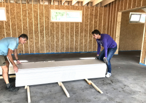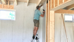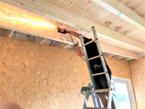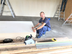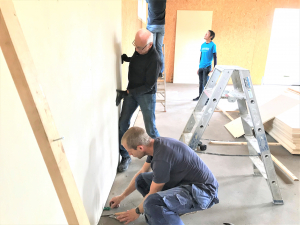 Er is een begin gemaakt met het monteren van gipsplaten in de kantine en in de krachtruimte werd een flink deel van de multiplexplaten aangebracht. Slijptollen slepen de doorstekende dakschroeven af en er werd nog even een plafonnetje getengeld. Buiten werden alvast 2 kuilen volgestort met aarde. Hopelijk kan dit in de loop van de week worden afgerond als de kantplanken door houtskeletbouwer Haen worden gemonteerd. Ook zal installatiebedrijf De Lange verder gaan met de electra waar vorige week reeds aan werd begonnen.