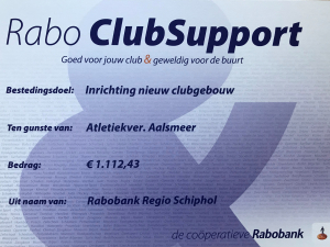 Atletiekvereniging Aalsmeer doet natuurlijk weer mee aan de Rabo Clubsupport actie van de Rabobank. Het geld kunnen we goed gebruiken! Vorig jaar hebben we maar liefst 1.478,50 euro ontvangen van de Rabobank. Gaan we daar dit jaar overheen?